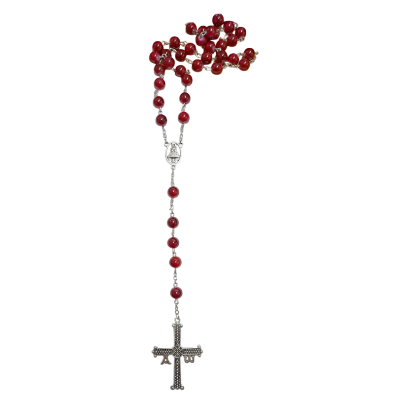 COVADOGA ROSARIO CRISTAL ROJO 8mm Y CRUZ DE LA VICTORIA
